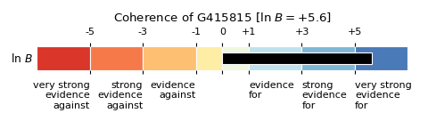 Show a sky map’s Bayes factor for coherence vs. incoherence as a bullet chart.